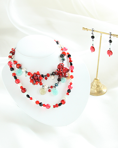 • イヤリング&ネックレス NE-G0005 RE/BK